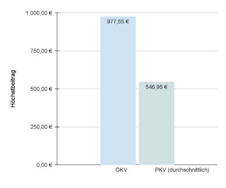 Vergleich der monatlichen Höchstbeiträge zur Kranken- und Pflegepflichtversicherung für 2023